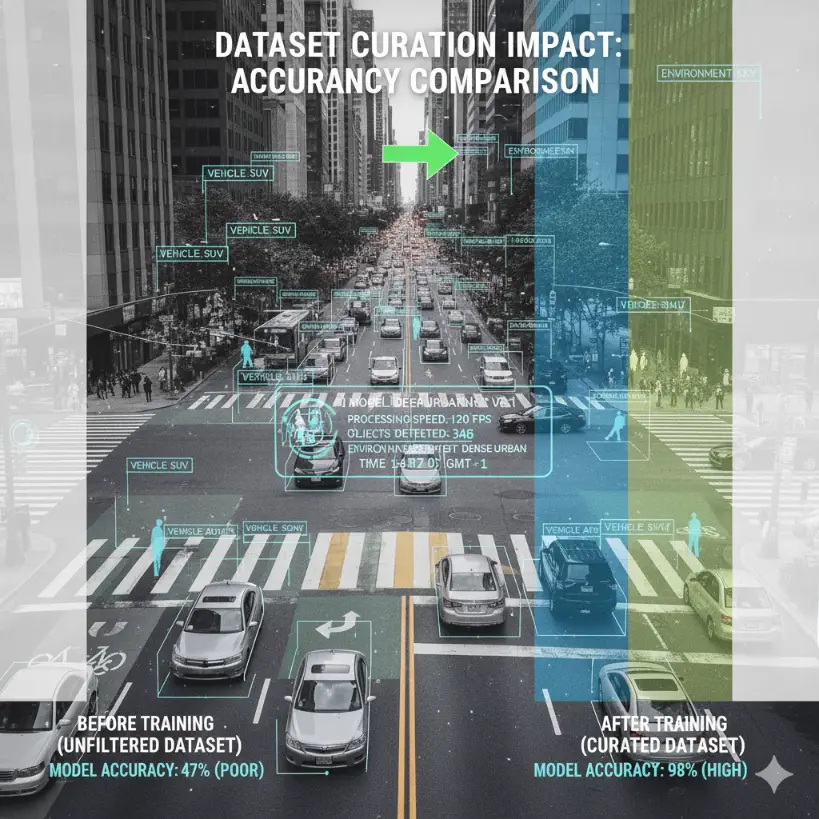 Curated data ensures models generalize better, make fewer errors, and perform safely across environments- whether in self-driving cars, hospitals, or creative tools.