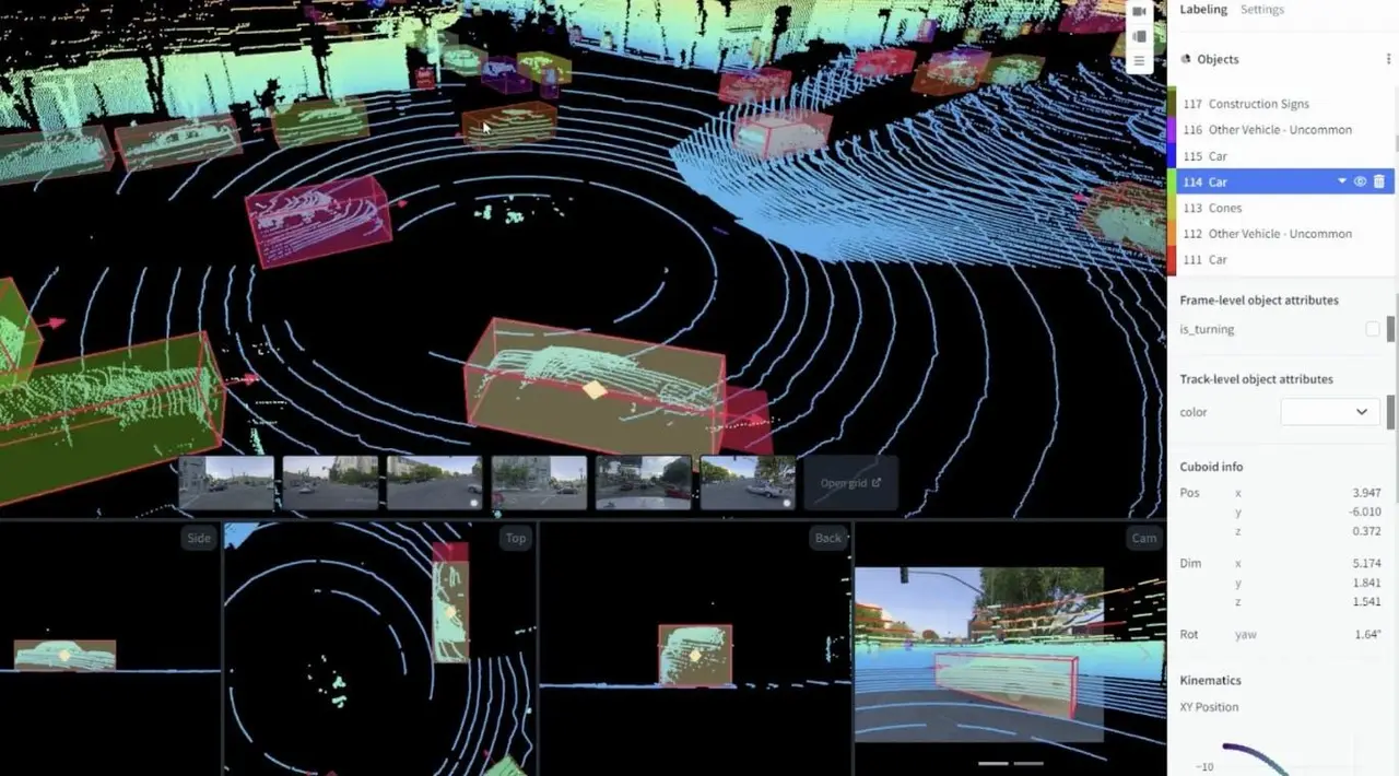 Bounding boxes, semantic segmentation, object tracking, and sensor fusion labeling across LiDAR and camera data.