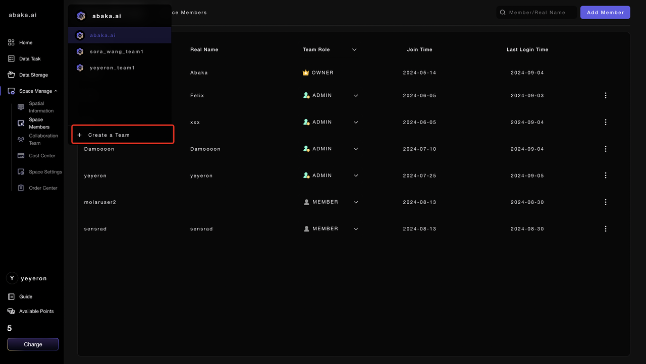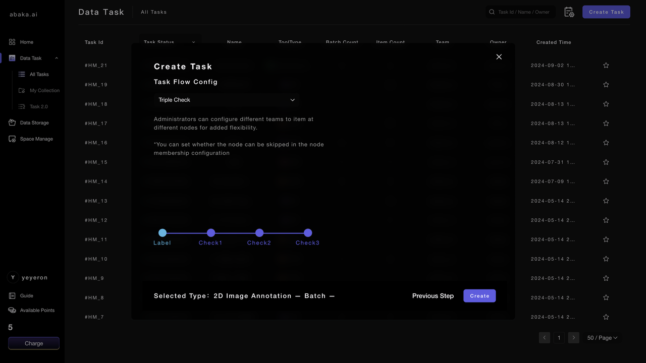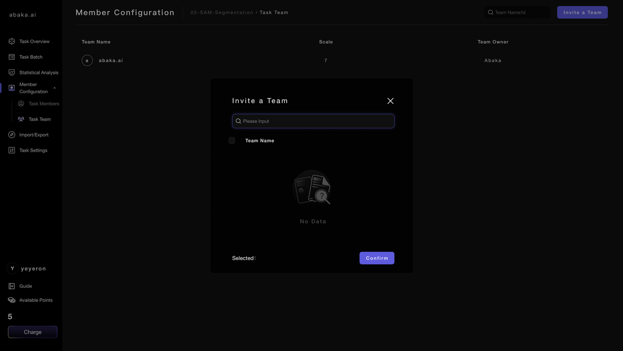 As shown in the figure below, "team" is the basic unit of ABAKA AI ecosystem. The team can serve as an "isolated island"; complete the data labeling requirements within the team.