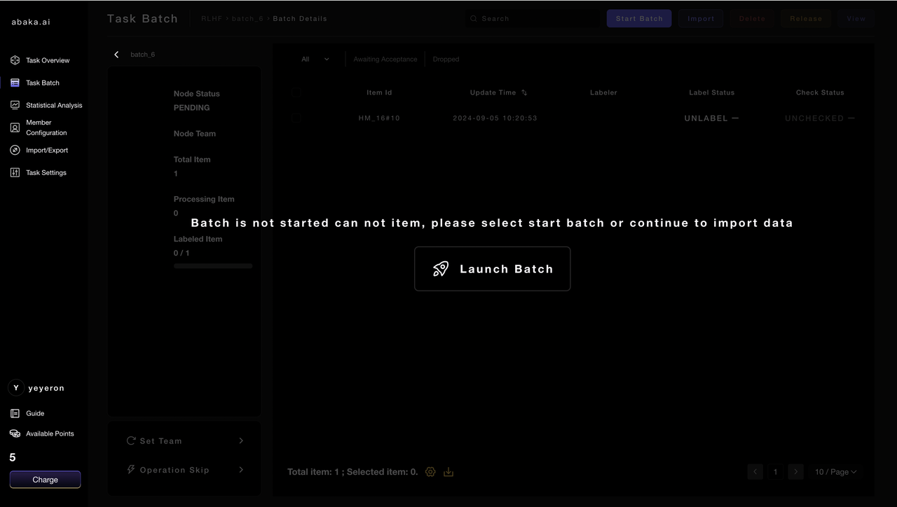 Click on [Data Batch] on the left toolbar to enter the batch list. You can select [Launch Batch] to officially put the data of the batch into the production process, or click [Import Data] to continue importing data.