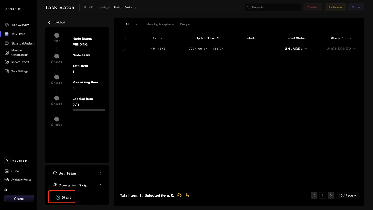 - When a batch of data is pushed to your review node, you can click the [Start] button in the lower left corner to begin the review of that batch.