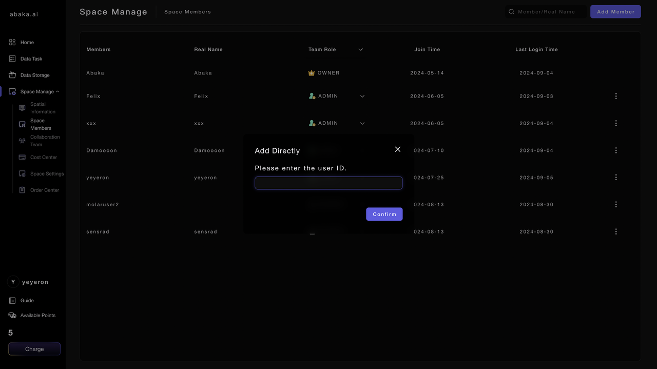- You can register for a MooreData platform account via theMooreData Registration Link. After successful registration, the platform will automatically create a team space for you called “username_team1”.