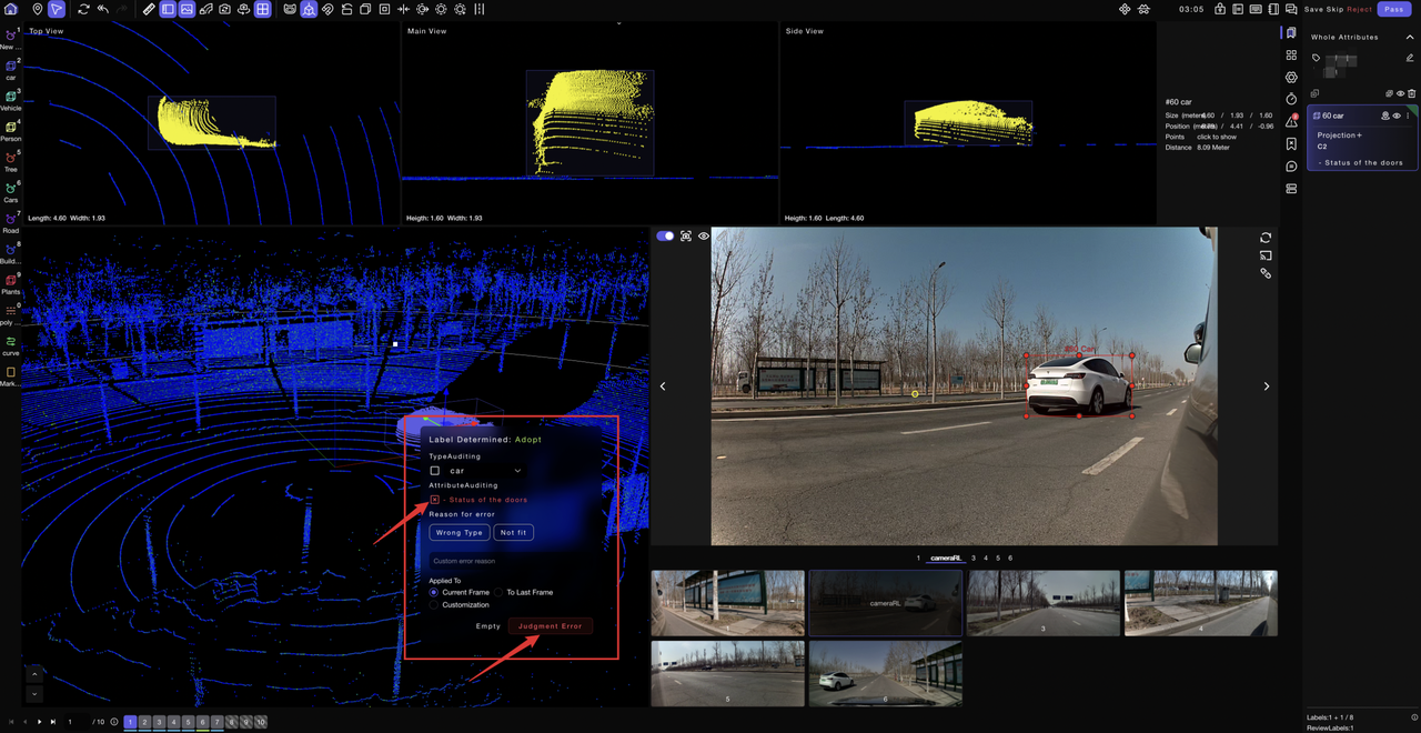 - Checking the corresponding error items in the corresponding positions on the label details page, selecting the tag errors preset in the task settings, and choosing the custom error reasons, will all activate the error judgment button. Clicking on the judgment error can save the error review of the label.