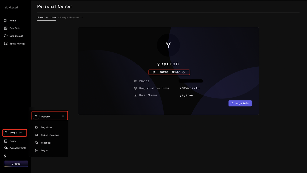 - Click on the “copy” button next to the Personal ID.