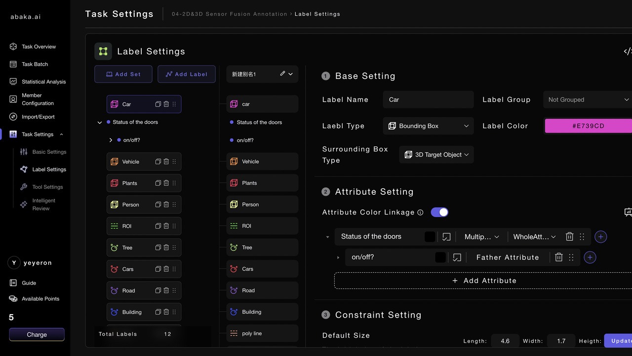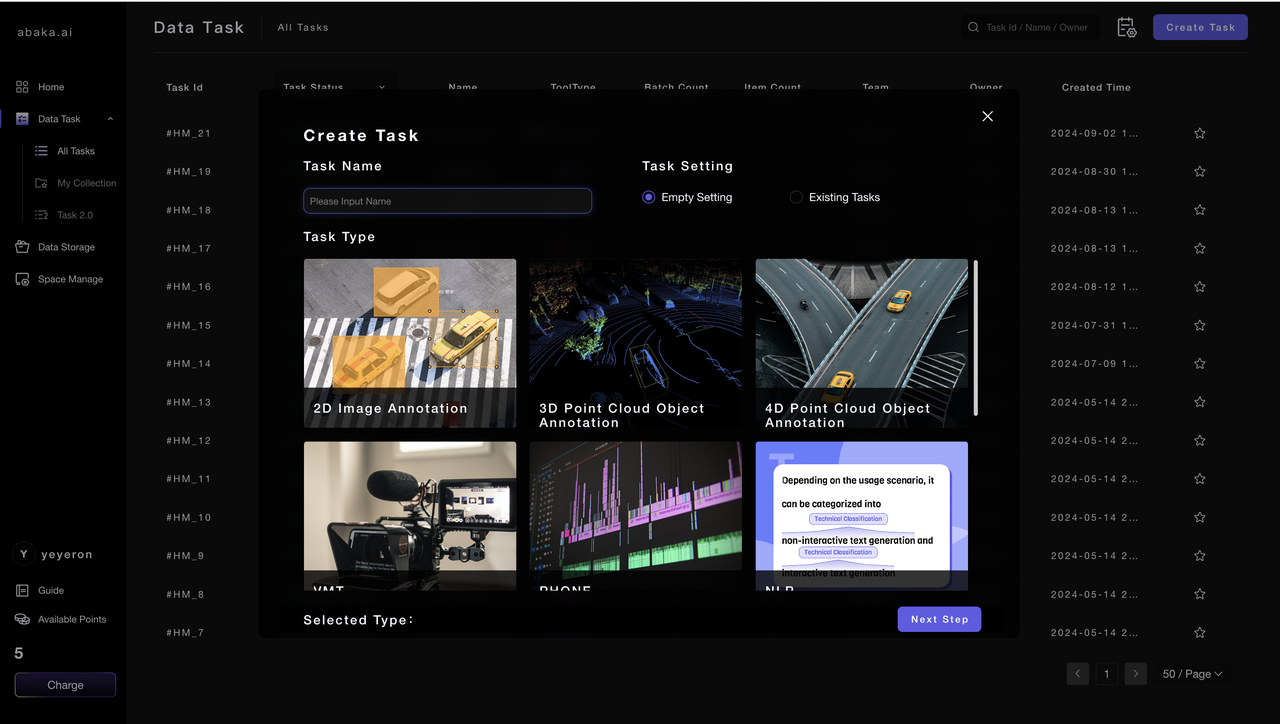 Task, representing all the data under this task, will follow the same annotation rules, labelling setting, attribute setting, workflow, etc. for data production.